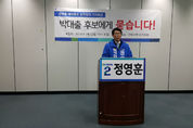 정영훈 진주갑 더불어민주당 국회의원 예비후보는 22일 진주시청 브리핑룸에서 기자회견을 열고, 정책선거를 위해 토론을 응해줄 것을 박대출 진주갑 새누리당 예비후보에게 정식 공문을 보내 요구했으나, 이에 응하지 않고 있다며 공개질의 내용을 발표했다. 《정영훈 예비후보 공개질의서 전문》 진주시민 여러분, 저는 지난 3월 15일 이 자리에서, 정책선거를 위한 토론회를 열자고 박대출 후보에게 제안하고, 박대출 예비후보 캠프에 정식 공문을 보냈지만 유감스럽게도 이 시간까지 아무런 답을 듣지 못했습니다. 박대출 후보가 토론회에 응하지 않으니 부득이하게, 다음 4가지 사항에 대하여 1차로 공개질의를 합니다. 첫째, 진주의료원 재개원 여야 결의문 채택 때 불참한 이유가 무엇입니까. 2013년 4월 29일 국회는 본회의를 열고, 홍준표지사가 일방적으로 휴업시킨 진주의료원 정상화 촉구를 위한 결의문을 여야합의로 채택하였습니다. 진주지역구 의원인 박대출 후보는 해당 본회의에 참석하지 않았는데, 그 이유가 무엇인지 묻습니다. 둘째, 국가항공산단으로 진주일자리 6만개를 창출했다고 주장하는 근거가 무엇입니까. 진주/사천 국가항공산단은 아직 예비타당성 조사결과도 나오지 않