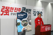 김영호 진주 ‘을’ 국회의원 예비후보는 (사진·54·새누리당, 前 감사원 사무총장) 16일 오전 진주시청 브리핑 룸 기자회견을 청해 서비스 산업 육성을 통한 <10만 일자리 창출> 등 오는 4.13 총선 출마를 위한 공약을 발표하고 ‘남강의 새로운 부흥, 新르네상스 시대’를 열겠다는 『강한 진주 큰 비전』을 제시했다. 김 예비후보는 '강한 진주 큰 비전'에서 진주가 나아가야할 방향의 핵심을 크게 네 가지로 정리했다. 첫째> 역사․관광 중심도시 둘째> 교육·문화 중심도시 셋째> 미래산업 중심도시 넷째> 생활기반 중심도시 김영호 예비후보는, "그간 숨 가쁘게 달려온 ‘추격형 경제성장’에서 ‘선도하는’ 창조적인 경제로 전환함에 있어, 진주가 화합하고 힘을 모아 대한민국 남부권 중심도시로 ‘우뚝’서야 한다"고 역설하고, "항공과 바이오산업 등의 미래산업은 준비기간이 소요돼 당장의 일자리 해소가 중요하다"며 진주의 10만 학생들과