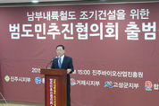 최구식 경남도 서부부지사는 27일 개최된 ‘남부내륙철도 범도민추진협의회’ 출범식에서 “남부내륙철도 개통으로 전국 6대 낙후지역중 하나인 서부경남의 교통혁명이 이루어질 것이다”고 밝혔다. 이번 ‘남부내륙철도 범도민추진협의회’는 남부내륙철도 노선지역의 서부지역 5개 시․군 주민들이 정부에 남부내륙철도 조기 건설을 촉구하기 위해 발족되었다. 이날 출범식은 진주바이오산업진흥원에서 개최되었으며, 최구식 경남도 서부부지사, 오태완 경남도 정무특보, 진주․합천․고성․통영․거제의 시장․군수, 도의원과 주민대표 등 100여명이 참석했다. 협의회는 하계백 진주상공회의소 회장을 협의회 회장으로 추대하고 5명의 부회장(지부회장)을 선출하는 등 임원진을 구성하고, 남부내륙철도의 조속한 추진을 위한 범도민추진협의회 결의문을 채택했다. 결의문의 주요 내용은 ▲서울~김천 간 편익 100% 반영, ▲낙후된 남부내륙 지역발전을 위한 정부의 정책적 판단 촉구, ▲남부내륙철도의 조속 추진이 관철될 때까지 총력투쟁 전개이다. 이후 “정부는 남부내륙철도를 조