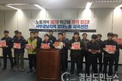 (진주/조권래 기자) = 서부경남 양대 노총인 한국노총 경남서부지역지부(지부장 조경욱)와 민주노총 진주지역지부(지부장 강수동)는 28일 진주시청 브리핑룸에서 '노동 개악 폐기! 박근혜 즉각 퇴진!'을 요구하며 시국선언문을 발표했다. 양대 노총은 "박근혜·최순실 국정 농단으로 분출된 100만 촛불의 요구는 명확하다"며 "박근혜 퇴진 요구는 국정농단 사건으로 분출된 대항쟁으로 반노동, 반민중, 반통일, 반평화, 민주주의와 역사마저 파괴해온 박근혜 정부에 대한 국민들의 준엄한 심판이다"고 강조했다. 이어 그들은 "박근혜정부 4년 스스로 약속했던 공약도 일방적으로 파기했고, 세월호 침몰때도 무능과 무책임의 극치를 보여줬다"고 꼬집고, "창조경제의 이름 하에 재벌의 호주머니를 털고, 재벌들이 노동자들을 탄압하도록 방조했으며, 국가가 나서서 노동자들의 권리를 폭력적으로 박탈했다"며 박근혜 정권의 실정을 일갈했다. 또, 양대노총은 "비정상인 최순실과 박근혜 정권은 비정상의 정상화를 외치며 혹세무민했다"며 "낙하산 인사와 정권의 실정으로 발생한 공