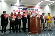 (진주/조권래 기자) = 시국회의(상임대표 서도성)는 지난 1일 진주시청에서 기자회견을 열고 박근혜 대통령의 3차 담화에 대해 입장을 내놨다. 이들은 "단 하루도 견딜 수 없기에 당장 물러나라는 국민의 외침에도 국민 기만과 꼼수로 시간을 벌며 특권을 누리겠다는 대통령의 3차 담화문은 대국민 선전포고와 다를 바 없다"며 "우리는 지금과는 다른 세상, 오직 국민을 위해 존재하는 민주공화국을 꿈꾸는 진주시민과 함께 이를 단호히 거부한다"고 입장을 밝혔다. 이어 이들은 "나라가 혼란에 휩싸여 있음에도 불구하고 자신은 뒤로 빠진 채 국회에 공을 넘겨 새로운 혼란을 조성하는 박근혜가 노리는 것은 증거인멸과 은폐다"며, "국정농단 공범인 새누리당은 자신들의 정치생명을 연장하는 데만 온 신경을 곤두세우고 있다"고 일갈했다. 또 이들은 "새누리당은 헌법 유린과 국정농단의 중심축이면서도 비상회의를 한다며 비상시국을 논하고 있지만, 본질은 정권 재창출에만 있을 뿐이다"며, "우리 사회의 불평등과 구조적 모순을 해결하기 위한 것도 아니다. 노동자, 서민은 어찌 됐든 온갖 특혜로 부
