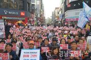 (진주/조권래 기자) = 박근혜퇴진 민주확립 진주비상시국회의(이하 진주시국회의)가 주관한 지난 19일(토) 제2차 진주시민시국대회에 1,000여명의 진주시민이 참여해 '박근혜 퇴진'을 외쳤다. 지난 5일 700~800여명이 모여 처음 집회를 가진이래 12일 300~400여명, 17일 200여명 모인이후 점점 그 수가 늘어나는 추세이다. 19일 박근혜퇴진 시국집회에 참여한 진주시민들이 목소리를 높이고 있다./사진=조권래 '내려올 때까지 밝힌다'는 슬로건 아래 열린 이날 집회에서는 시민들의 자유발언등과 삼행시 발표, 차없는 거리에서 ~ 평거동 10호 광장까지로 거리행진 순으로 이어졌다. 박근혜퇴진 시국집회에는 26일에도 열릴예정이며, 26일에는 광화문 광장에서도 대규모 집회가 예고돼 있다. 19일 박근혜퇴진 시국집회에 참여한 거리행진 모습, 시민들의 행렬이 수백미터에 이르고 있다./사진=조권래