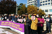 (진주/조권래 기자) = 진주지역 농민들은 16일 오전 진주시청 앞 광장에서 '박근혜 국정농단에 대한 시국선언'과 '쌀값 폭락, 국정파탄, 국정농단, 범죄자 박근혜 퇴진, 농기계 몰고 청와대로! 출정식'을 가졌다. 이날 농민들은 시국선언과 출정식에 앞서 올해 수확한 벼 40Kg 750포대, 800Kg 12포대를 진주시청 광장에 적재하고, 출정식 후에는 트럭 10 여대와 트랙터 1대를 몰고 거리시위를 벌였다. 출정식에서 농민들은 "농업파탄, 농민말살, 국정농단, 백남기 농민 폭력살인 박근혜 퇴진하라"는 등의 구호를 외치고, "백남기 농민 폭력살인 책임자 처벌과 재발방지 대책, 쌀값 대폭락 대책을 내놓을것"을 요구했다. 한편, 이날 출정식은 전국농민회총연맹(전농)과 전국여성농민회총연합(전여농)의 오는 25일 서울 광화문에서 '쌀값폭락, 농정파탄, 국정농단, 범죄자 박근혜 퇴진'집회의 출정식으로 농민들은 의령, 합천 등지를 돌며 시위를 이어갈 계획이라고 전했다. 진주지역 농민들이 쌀값 폭락 대책을 내놓으라며 진주시청 앞 광장에 올해 수확한 벼를 쌓고 있