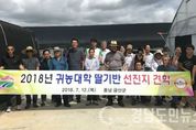 (거창/조현광 기자) = 거창군은 지난 12일 귀농영농대학 딸기반 교육생 20명을 대상으로 선진지 현장 견학을 다녀왔다고 13일 밝혔다. 이번 견학은 거창군 농업기술센터에서 귀농․귀촌인들의 기초 영농 기술 교육을 위해 운영 중인 귀농․귀촌 영농대학의 현장 실습 교육의 하나로, 교육생들에게 선진 영농 기술의 현장 견학과 교육생 간의 유대감 강화를 위함이다. 선진지 견학 현장은 충남 금산군 금산딸기연구농장, 충남대학교 현장실습교육장 및 6차 산업 사업장 일원에서 실시됐다. 다른 지역의 재배, 생산과정과 가공․유통이 복합된 6차 산업에 대한 정보를 습득하고 성공 사례 등 생산에서 유통까지를 비교 분석하고 새로운 첨단 농업기술 능력을 배양했다. 선진지 견학에 참여한 교육생들은 “선진 농업기술을 배울 수 있는 견학이었다”며 “성공적인 귀농을 위해 열심히 배워야겠다”고 했다. 군 관계자는 “부농실현 농촌경제에 도움이 될 수 있게 귀농인 농업 기술 능력 향상을 위한 다양한 지원 프로그램을 마련해 귀농인의 빠른 정착을 돕겠다”고 말했다.