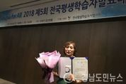 (거창/조현광 기자) = 거창군(군수 구인모)은 지난 12일에 군산시라마다 호텔에서 개최한 2018년 전국평생학습자 발표대회에서 배움나눔 분야에 행복상을 수상했다. 올해로 5회째 개최된 전국학습자발표대회는 전국평생학습도시협의회에서 155개 평생학습도시를 대상으로 평생학습에 참여한 학습자들의 우수사례를 공유하고 평생학습문화를 확산하기 위해 매년 개최되는 전국규모의 학습자 발표대회다. 거창군은 대회 3개 분야 중 배움나눔 분야에 참여했다. 학습동아리 거창한 이야기할머니 장해주 강사님은 ‘평생학습은 새로운 내 삶을 위한 첫걸음입니다’라는 주제로 영예의 행복상을 수상했다. 거창군 발표자는 개인의 삶에 평생학습이 주는 행복과 의미에 대해서 이야기하며, 세 아이의 엄마이고 전업주부의 삶의 2막을 열어준 것은 다름 아닌 평생학습 수강이었다며 지난 2003년부터 시작된 학습활동으로 80여 개의 프로그램에 참여하고 20여 개의 자격증을 취득한 결과, 지금은 동화구연이라는 분야에서 관내·외에 강의를 할 수 있는 전문가가 됐다며, 평생학습은 분명 인생의 2막을 여는 중요한 열쇠가 됐다고 사례를 전했다. 거창군 수상자는 "평생학습은 개