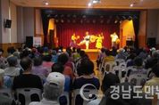 (거창/조현광 기자) = 거창군(군수 구인모)은 지난 4일 거창군 삶의 쉼터에서 경상남도 우수예술단체 찾아가는 문화활동 사업으로 어르신 100여 명을 모시고 극단 미소의 퓨전악극 쇼!쇼!쇼! ‘아빠의 청춘’ 공연으로 큰 호응을 받았다. 퓨전 악극 '아빠의 청춘'은 실직한 가장의 가출로 인해서 그동안 제멋대로 살던 가족이 지난 나태한 삶을 반성하며 가족의 소중함과 알게 되는 내용으로 중간에 등장하는 악극으로 관객과 함께 어울려 즐겁게 놀 수 있는 마당극 형태의 코미디극이다. 이날 공연은 거창군 삶의 쉼터 강당에서 개최돼 많은 어르신들이 쉽게 볼 수 있었다. 신나고 재미있는 공연으로 모처럼 많은 어르신들이 친구들과 함께 노래하고 박수치면서 즐거운 시간을 보냈다. 한편 우수예술단체 찾아가는 문화활동 사업은 매년 경남문화예술진흥원 공모를 통해 선정된 단체들이 문화소외지역을 찾아 문화예술을 널리 알리는 공연 행사로 올해 거창군에서 2개의 단체가 선정돼 하반기에도 한 차례 더 공연을 선보일 예정이다.