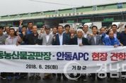 (거창/조현광 기자) = 구인모 거창군수 당선인과 거창사과발전협의회 회장, 농업회사법인NH유통대표, 사과농가 등 28명은 26일 사과유통 개선을 위해 안동 농산물 공판장과 농산물유통센터(APC)를 방문했다. 이번 견학은 안동 APC의 사과 수집, 선별, 포장, 보관, 출하 등 물류기능과 안동 공판장의 공판 운영 시스템을 도입해 향후 농산물유통 개선 자료로 활용하고자 함이다. 지난 1997년 개장한 안동 농산물 공판장은 매출액과 거래 물량이 해마다 늘어 전국의 사과거래 가격 형성을 주도할 만큼 큰 규모로 성장했으며 농산물유통센터(APC)와 청과물종합처리장 등을 갖추고 있다. 거창군에 소재한 서북부경남거점APC는 농산물 집하·선별장, 저온저장시설을 갖춘 과수전문거점산지유통센터로서 2009년에 준공해 거창·함양·합천군 지역에서 생산되는 사과의 안정적인 유통기반을 조성해 농가소득 증대에 힘쓰고 있으며, 거창사과원예농업협동조합은 소규모 농산물 공판장을 운영하고 있다. 군 관계자는 “안동 농산물 공판장과 농산물유통센터 견학과 현장 간담회를 통해 농산물유통 개선방향에 큰 도움이 될 것이다. 농가소득 증대를 위해 산지유통활