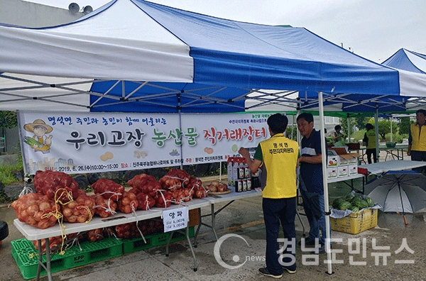 (진주/최광용 기자) = 진주시 명석면주민자치위원회(위원장 구본경)는 26일 진주북부농협(명석면 우수리) 앞에서“우리고장 농산물 직거래 장터”를 열었다. 명석면 주민자치위원회에서는 처음으로 지역에서 생산한 각종 신선농산물, 과일, 곡류, 계란, 농산가공품 등을 농가가 직접 판매하고 소비자는 저렴한 가격으로 구매할 수 있는 장을 마련했다. 이날 북부농협(조합장 박보영)과 연계한 공산품 할인행사까지 이루어져 오랜만에 면 소재지에서 풍성하고 왁자지껄한 시골장터가 열려 개장한지 2~3시간 만에 모든 농산물이 판매됐다. 이현, 천전 등 동지역의 주민자치센터 관계자 및 인근 지역 주민들의 방문도 이어져 명석면의 농산물을 홍보하고 주민들과 화합하는 자리가 됐다. 장세갑 명석면장은 “오늘 행사를 계기로 명석면 주민자치위원회 및 북부농협과 함께 인근 동지역과의 연계하여 우리 고장의 농산물 판매 및 판로 확보에 노력 하겠다”고 밝혔다.