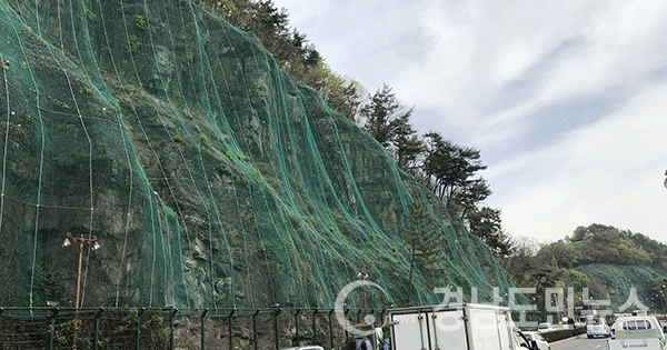 (진주/최광용 기자) = 그동안 안전사고 위험이 상존해 온 뒤벼리구간(상대동 새한주유소~옥봉동 호텔동방)이 안전시설물 정비공사로 위험요소가 완전히 사라질 것으로 기대된다. 진주시에 따르면 시는 2019년 2월부터 뒤벼리 급경사지 구간에 시행 중인 『뒤벼리 암반사면 안전시설물 정비공사』가 수목(지장목) 제거, 낙석방지망 및 낙석방지 울타리 설치, 낙석방지책 도색 등의 대규모 도로안전시설물 정비공사를 대부분 완료하고 4월 준공을 위해 마무리 작업이 한창이라고 밝혔다. 뒤벼리 급경사지는 1995년 안전사고예방을 위해 안전시설물(낙석방지망)이 낙석위험 구간에 설치됐으며, 약 25년이 경과된 현시점까지 수목의 뿌리 성장으로 인한 암반균열로 크고 작은 낙석이 수차례 발생했고, 안전시설물(낙석방지망) 또한 노후화 진행으로 인하여 각종 안전사고 위험이 있어 왔다. 이에 시는 2017년 5월 정밀안전점검용역 실시하여 안전시설물 보강(낙석방지망 전면 설치) 및 수목 제거가 반드시 필요하다는 용역 진단 결과에 따라 낙석 발생 등으로 인한 인명피해 예방과 재난안전사고 방지를 위해 뒤벼리 전면에 수목(지장목) 제거 및 낙석방지망 설치 등의 정비 마무리 공사 진행 중에 있다. 한편