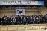(하동/최광용 기자) = 하동군은 20일 농산물가공지원센터 강당에서 내빈과 선도농업인, 입학생 등 150여 명이 참석한 가운데 2019 하동군 농업인대학·대학원 입학식을 개최했다고 밝혔다. 이날 입학식은 입학생 선서, 군수 격려사, 군의회의장·도의원 축사, 학사운영 안내 및 자치회 구성 등의 오리엔테이션 순으로 진행됐다. 또 입학식에서는 ‘약초생활건강’을 주제로 한 김만배 박사의 강의가 있었다. 올해 처음 개설되는 농업대학원은 농촌융복합과정 63명, 농업인대학은 친환경농업과정 40명 등 2개 과정으로 진행된다. 농업인대학원은 3월부터 내년 11월까지 2년간 총 50회 200시간, 농업인대학은 3월부터 11월까지 25회 100시간의 교육을 받게 된다. 농업기술센터는 교육생들의 만족도를 높이기 위해 현장문제해결 과정 등 맞춤형 교육방식을 적극 도입했으며, 농업인의 요구와 필요에 맞는 기술과 우리지역의 특성에 맞는 핵심기술을 중점적으로 교육할 방침이다. 또한 모든 교육은 전문기술 이론 강의와 그와 연계된 실습교육으로 이뤄져 실질적인 교육 효과가 나타날 것으로 기대하고 있다. 하동농업대학은 2008년 감과정을 시작으로