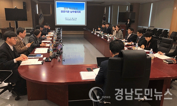 (진주/최광용 기자) = 진주시는 12일 오전 11시 혁신도시 내 한국남동발전에서 혁신도시 활성화와 정주여건 개선 방안 논의를 위한 진주혁신도시 공공기관 실무협의회를 개최했다. 이 날 회의에서 혁신도시 11개 이전공공기관 및 유관기관 실무위원들이 참석한 가운데 지역민과 이전기관이 함께하는 지역상생발전 사업, 시정홍보 및 각 기관별 건의․애로사항을 청취하고 수렴하는 시간을 가졌다. 또한 혁신도시 시즌2의 본격적인 추진에 따라 혁신도시를 지역성장거점으로 발전시키기 위하여 각 기관에서는 사회적 가치실현 및 정주여건 개선 등 다양한 사업발굴에 대한 의견을 제시했다. 특히 혁신도시 내 무인민원발급기 설치, 혁신도시 내 청소년을 위한 문화공간‧ 체험시설 확충, 혁신도시와 금산지역 간 버스 직접노선 설치 등 정주여건 개선을 위한 다양한 의견들이 제시되어 추진방안에 대해 논의했다. 진주혁신도시 공공기관 실무협의회는 진주혁신도시 기관장협의회(회장 조규일 진주시장)를 실무진 차원에서 지원하고 협의하기 위해 2015년도 창립되어 진주시, 이전기관, 유관기관 등 17명의 실무위원으로 구성되어 유기적인 협력체계를 유지하며 원활한 업무협조를 위해 분기별로 개최