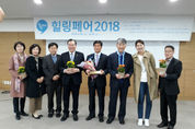 (산청/최광용 기자) = 허기도 산청군수는 6일 서울 양재aT센터에서 열린 국내최초 힐링전문 테마 전시회인 힐링페어 2018에서 힐링공로상을 수상했다. 올해 2회차를 맞이한 힐링페어 2018은 6일부터 8일까지 개최됐으며, (사)힐링산업협회, ㈜이즈월드와이드가 주최하고 농림축산식품부·산림청·한국농수산식품유통공사 등이 후원했다. 힐링푸드, 힐링뷰티, 힐링시티&투어, 힐링클리닉, 힐링세미나 등을 테마 구성된 8047㎡ 규모의 전시회에는 총 150개사 300개 부스를 운영했다. 올해 처음 시상한 힐링공로상은 국내 힐링 프로그램 개발 및 산업 발전에 기여한 공로가 있는 단체장 등을 대상으로 사단법인 힐링산업협회(명예회장 이시형, 협회장 이제학)에서 선정했다. 허기도 산청군수와, 장욱현 영주시장, 심재국 평창군수, 김영진 제주시 관광협회장, 임동구 체질라이프스타일연구소장 5인이 수상의 영예를 안았다. 힐링부문에서 공로상 수상의 영예를 안은 허기도 군수는 한방자연휴양림, 한방약초테마공원이 들어선 동의보감촌을 힐링관광 중심지로 집중 육성하고, 전국공직자, 기업체, 사회단체 등을 대상으로 한 동의보감촌 힐링아카데미·캠프를 성공