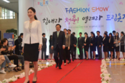27일 구직 청년들에게 무료로 정장을 대여해주는 '드림옷장'을 소개하는 '청년 취업 면접 정장 패션쇼'가 부산 시청 1층 로비에서 개최된 가운데 대학생들과 서병수 시장이 모델로 참여해 워킹을 하고 있다.