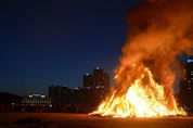 정월 대보름인 2일 해운대 해수욕장에서 열린 제 36회 달맞이 온천축제에서 수만 명의 시민이 참여한 가운데 달집 태우기 행사를 진행하고 있다.