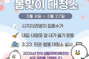 [경남도민뉴스=최미정 기자] 김해시는 쾌적하고 깨끗한 도시환경 조성을 위해 이달 27일까지 2026년 봄맞이 대청소를 실시한다고 10일 밝혔다. 이번 대청소는 오는 4월 23일 개최되는 2026 전국 생활체육대축전을 앞두고 김해를 찾는 방문객들에게 깨끗하고 쾌적한 도시 이미지를 제공하기 위해 생활권 주변을 비롯해 계곡, 관광지, 주요 관문도로, 체육시설, 공원 등지 방치 쓰레기를 일제히 수거하는 데 중점을 둔다. 청소 기간 동안 청소대행업체는 시가지 가로청소를 집중 실시하고, 19개 읍·면·동에서는 무단투기 상습지역을 선정해 집중 정비에 나선다. 시민들의 자발적인 참여를 유도하기 위해 ‘내 집 앞·내 점포 앞 내가 쓸기’ 운동도 함께 추진한다. 오는 23일 오전 11시에는 김해종합운동장 일원에서 자원봉사단체협의회, 통장협의회 등 자생단체와 공무원 등 200여 명이 참여하는 민·관 합동 대청소를 실시한다. 이날 전국 생활체육대축전의 성공적인 개최를 기원하는 ‘붐업(Boom-up) 조성 캠페인’도 병행 추진한다. 이용규 자원순환과장은 “겨우내 쌓인 쓰레기를 말끔히 정비하고 도시