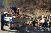 (거창/최병일 기자) = 거창군 지난 26일부터 29일까지 4일간 위천면 황산저수지 일원에서 독거노인 등 관내 취약 계층 100세대를 대상으로 1톤 트럭 100대 분량의 땔감을 전달하는 ‘사랑의 땔감 나누어 주기’를 하고 있다. 사랑의 땔감 나누어 주기는 거창군 선도산림경영단지 내 거창 신씨 문중 숲 가꾸기 현장에서 나오는 산림부산물을 거창군 산림조합이 수집하고 거창군 산림인력조직인 산림바이오매스 산물수집단이 땔감으로 용이하게 작업해 독거노인 등 어려운 이웃에게 무상으로 제공해 따뜻한 이웃사랑을 실천하는 사업으로 지역주민에게 호응을 얻고 있다. 또한 이 사업은 산지에 남아 있는 부산물로 인해 발생할 수 있는 산불,집중호우로 인한 산사태예방, 자연경관 정화, 산림인력 고용으로 인한 일자리 창출 등 다양한 효과를 거두고 있다. 군 관계자는 “이 사업을 통해 훈훈한 이웃사랑도 전하고, 산림바이오에너지 활용도를 높여 저탄소 녹색성장도 기대할 수 있다.”라고 전했다.