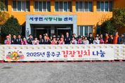[경남도민뉴스=최재경 기자] 울주군여성단체협의회가 19일 서생면 사랑나눔센터에서 이순걸 울주군수, 울주군여성단체협의회 회원, 대한유화 자원봉사자 등 70여명이 참여한 가운데 ‘2025년 울주군 김장김치 나눔행사’를 개최했다. 매년 진행하는 울주군 김장김치 나눔행사는 지역사회의 따뜻한 나눔 확산에 기여하고, 물가 상승으로 인한 어려운 이웃의 경제적 부담을 덜어주기 위해 마련됐다. 이날 참석자들은 절임배추와 무 3천㎏에 빛깔 좋은 국산양념을 정성스럽게 버무려 김장김치를 담갔다. 김장김치는 울주군 한부모가족, 울주군 드림스타트 대상 아동 등 취약계층 550세대(세대당 10㎏)에 전달할 예정이다. 김옥희 회장은 “이번 김장김치 나눔행사가 도움이 꼭 필요한 분들에게 작은 위로와 힘이 되길 바란다”고 말했다.