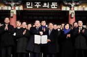 [경남도민뉴스=최현인 기자] 병오년 새해, 광주시와 전남도가 대한민국 민주화의 상징인 국립5·18민주묘지 오월영령 앞에서 광주‧전남 대부흥의 새 역사를 열어가기 위한 행정통합을 즉각 추진하기로 공동 선언했다. 강기정 광주광역시장과 김영록 전라남도지사는 2일 국립5‧18민주묘지에서 합동참배를 마친 뒤 민주의문 앞에서 광주‧전남을 하나로 묶는 ‘통합 지방정부 추진 공동선언문’을 발표했다. 광주와 전남은 인공지능(AI)과 에너지 대전환 시대를 맞아 남부권 반도체 벨트의 중심축이자 대한민국 미래 핵심 거점으로 도약하기 위해서는 광역 차원의 통합 추진이 필요하다는 데 공감대를 형성했다. 특히 이재명 정부가 시‧도 통합을 추진하는 지방자치단체에 대해 서울특별시에 준하는 지위와 조직 특례를 부여하고, 교부세 추가 배분과 공공기관 우선 이전 등 과감한 특전(인센티브)을 검토하고 있는 점을 고려할 때, 지금이야말로 광주‧전남이 행정통합을 추진할 최적기라는데 뜻을 모았다. 이에 따라 양 시‧도는 이번 공동선언을 통해 광주‧전남 행정통합을 더 이상 미루지 않고 즉각 추진하기로 합의했다. 양 시‧도는 시‧도