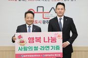 [경남도민뉴스=최현인 기자] 광주 동구는 광주무등청년회의소가 지난 9일 지역 내 취약계층의 따뜻한 겨울나기 지원을 위해 백미와 라면을 후원했다고 밝혔다. 이번 전달식은 지역사회 나눔 문화를 확산하기 위한 것으로, 백미 10㎏ 30포와 라면 30박스 등 총 150만 원 상당의 물품이 기부됐다. 후원 물품은 겨울철 한파로 어려움을 겪는 쪽방촌 주민들의 식사 지원에 활용될 예정이다. 백미는 들랑날랑 커뮤니티센터에서 쪽방촌 주민을 위한 무료 점심 식사 제공에 사용되며, 라면은 쪽방촌 공유부엌에 비치해 주민들이 언제든지 간편한 식사와 간식을 자율적으로 이용할 수 있도록 할 계획이다. 김창범 회장은 “지역사회와 함께 성장해 온 청년단체로서 쪽방촌 주민들을 위한 식사 지원에 동참하게 되어 매우 뜻깊게 생각한다”면서 “앞으로도 지역사회에 도움이 되는 나눔 활동을 지속적으로 이어가겠다”고 말했다. 동구 관계자는 “연일 이어지는 한파 속에서 이웃의 일상을 지켜주는 따뜻한 나눔을 실천해 주신 광주무등청년회의소에 깊이 감사드린다”면서 “사람을 먼저 생각하는 인문도시 동구의 가치가 이번 나눔을 통해 현장에서