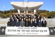 [경남도민뉴스=최현인 기자] 광산구의회가 8일 국립5·18민주묘지 합동 참배와 배식 봉사활동을 통해 병오년 새해 의정활동의 포문을 열었다. 이번 국립5·18민주묘지 합동 참배는 2026년 의정활동의 출발을 민주·인권·평화의 ‘5·18 정신’과 함께하고자 하는 의지를 담아 마련됐다. 특히 새해 첫 공식 일정을 참배로 시작한 것은 구민을 향한 책임 있는 의정활동과 올바른 지방자치 실현에 대한 각오를 보여주는 행보로 의미를 더했다. 이날 참배에는 김명수 의장을 비롯한 광산구의원들과 의회사무국 전 직원 등 60여 명이 참석했다. 참석자들은 헌화와 분향, 묵념으로 민주 영령의 숭고한 희생을 기리며 민주주의 가치 계승을 다짐하고 지역사회 발전과 구민의 안녕을 기원했다. 참배 후 김 의장과 의원들은 더불어락 노인복지관을 방문해 배식 봉사활동을 펼쳤다. 의원들은 어르신들을 위해 직접 중식 배식에 참여하며 나눔과 봉사의 가치를 실천했으며, 종사자들과의 간담회를 통해 복지 현장의 애로사항을 청취하는 등 소통의 시간도 가졌다. 김명수 의장은 “새해를 맞아 첫 공식 의정활동으로 민주묘지와 복지 현장을 찾았다는 점에서 의