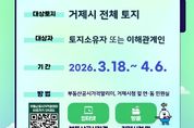 [경남도민뉴스=김부경 기자] 거제시는 2026년 1월 1일 기준 개별공시지가(안)에 대하여 3월 18일부터 4월 6일까지 열람 및 의견을 접수한다고 밝혔다. 개별공시지가 열람 대상은 국토교통부에서 2026년 1월 23일 공시한 표준지 3,441필지를 제외한 약 22만 필지이며, 평균 지가는 지난해 대비 0.16% 소폭 하락했다. 다만, 지목변경, 분할, 합병 등 토지이동 및 도로 개설, 도시계획 변경 등의 주요 특성이 변경된 토지, 인근 지가 균형을 위하여 표준지가 변경된 경우에는 지가 변동폭이 클 수 있다. 또한, 시는 도로, 구거, 하천 등의 공공용지에 대한 대부료·사용료 산정, 사유지 취득세 산정, 재산 가치 파악 등 공시지가 활용이 증가하여 공공용지 약 3만필지에 대하여 2026년 개별공시지가를 산정하였으며 공시 후 활용할 예정이다. 2026년 개별공시지가(안)은 4월 6일까지 부동산공시가격알리미와 시청 토지정보과 및 면·동 민원실에서 열람할 수 있다. 열람된 개별공시지가에 대하여 의견이 있는 토지소유자 또는 국·공유지 대부자·사용자 등의 이해관계인은 4월 6일까지 의견서를 부동