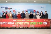 [경남도민뉴스=김채연 기자] 부산 사상구는 지난 18일 본관 3층에서‘2025년 고향사랑기부제 답례품 재기부 전달식’을 개최했다고 밝혔다. 이번 전달식은 기부자들이 제공받은 답례품을 다시 지역사회에 기부하는 따뜻한 나눔 실천에 감사의 뜻을 전함과 동시에 장애인복지시설 및 공동생활가정 등 취약계층 지원기관에 답례품을 기부함으로써 기부의 가치를 한번 더 확산하는 취지로 마련됐다. 이번 고향사랑답례품 재기부는 기부자 4명, 재기부 금액 1,200만 원 규모로 기부처의 현황, 기호를 조사하여 즉석 돈가스, 갈비탕으로 구성된 물품을 기부했다. 한편 사상구는 ▲ 고향사랑기부제 시행 첫 해 3명, 450만 원 ▲ 2024년 12명 1,680만원 ▲ 2025년 상반기 1명 600만 원 재기부로 단순한 기부를 넘어 ‘기부-답례-재기부’로 이어지는 선순환 기부문화를 주도, 안정적으로 정착시키고 있다. 조병길 사상구청장은 “기부자분들의 적극적인 재기부 참여로 고향사랑기부제가 지역을 살리는 선한 나눔 문화 확산에 일조하고 있다”며 “기부자분들의 의미 있는 나눔 실천에 감사드리며 고향사랑기부제를 통해 조성된 기금을 주민