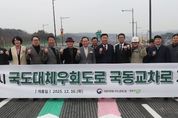 [경남도민뉴스=박만수 기자] 청주시 국도대체우회도로 3순환로 중 청원구 내수읍 국동리에 위치한 국동교차로 연결로가 16일 오후 4시부터 모든 방향으로 개통된다. 청주시는 청주·보은 방향 연결로 공사가 완료됐으며, 대전지방국토관리청 주관으로 이날 오후 2시 공사 현장사무실에서 개통식이 개최됐다고 밝혔다. 행사에는 이범석 청주시장, 방윤석 대전지방국토관리청장, 김현기 청주시의회 의장을 비롯한 내빈과 내수읍 및 율량‧사천동 주민들 등 40여명이 참석했다. 국동교차로 연결로 공사는 청주시와 대전지방국토관리청이 총사업비 150억원(국비 75억원, 시비 75억원)을 투입해 3순환로와 충청내륙로(율량~증평)를 연결하는 도로를 설치하는 사업이다. 2024년 4월 착공해 약 1년 8개월 만에 완공했다. 이번에 보은·청주 방향(율량↔용정) 연결로(Ramp-G, H)가 개통됨에 따라 국동교차로는 증평·청주·보은 등 모든 방향이 입체적으로 연결되며, 3순환로의 순환 기능이 완성됐다. 교차로 통행 안전성이 크게 향상되는 것은 물론, 상리교차로~용정교차로 구간 이동거리는 약 3.0km, 주행시간은 약 7분 단축