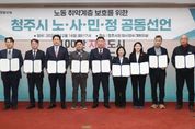 [경남도민뉴스=박만수 기자] 청주시 노사민정협의회는 16일 임시청사 대회의실에서 2025년 제2차 청주시 노사민정협의회를 열고, 청주시 노동정책의 첫 중장기 종합계획인 ‘청주시 노동존중정책 기본계획(2026~2030)’에 대한 심의를 진행했다. 회의는 이범석 청주시장 주재로 홍성수 한국노총 충북본부 청주지역지부 의장, 이태희 충북경영자총협회 회장을 비롯해 노동계, 경영계, 시민사회, 지방정부를 대표하는 노(勞)·사(使)·민(民)·정(政) 위원 9명이 참석한 가운데 열렸다. 이날 심의된 청주시 노동존중정책 기본계획은 그동안 개별적·단편적으로 추진돼 온 노동 관련 정책을 종합·체계화한 청주시 최초의 중장기 계획으로, 향후 5년간 청주시 노동정책의 비전과 추진 방향을 담고 있다. 아울러 2026년 노사민정협력 활성화 사업 추진계획에 대한 심의를 통해, 기본계획의 정책 방향을 현장 중심의 협력사업으로 구체화하는 방안도 함께 논의했다. 특히 플랫폼·특수고용·파견 노동자 등 노동 취약계층의 권익 보호와 안전한 노동환경 조성을 위해 노사민정이 공동의 책임 아래 협력해 나갈 것을 다짐하는 ‘노동 취약계층 보호를