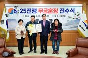 [경남도민뉴스=최민숙 기자] 김천시는 2월 19일 김천시청 접견실에서 6·25전쟁 중 국가와 나라를 위해 헌신하고 돌아가신 무공수훈자의 유족에게 무공훈장을 전수하는 전수식을 개최했다. 이번 전수식에서는 고(故) 오길환 님과 고(故) 박규독 님, 고(故) 장준상 님, 총 세 분의 유족에게 화랑무공훈장이 전달됐다. 고인들은 6·25전쟁에 참여하여 전쟁 당시 무공훈장 수여가 결정됐으나, 전쟁 중의 혼란으로 교부받지 못해 오늘 유족들이 대리 수여하게 됐다. 유가족들은 이제라도 고인의 희생을 기리고 기념할 수 있는 무공훈장을 수여하게 된 것에 크게 기뻐하며 고마워했다. 배낙호 김천시장은 “지금이라도 무공훈장의 주인을 찾아드리게 되어 기쁘게 생각한다. 무공훈장 수훈은 개인을 넘어 가문에도 매우 자랑스러운 일로 김천시민들에게도 자긍심을 심어주는 계기가 될 것이다.”라고 했다. 한편, 이번 전수식은 6·25전쟁 무공훈장 찾아주기 조사단에서 추진하고 있는 ‘6·25전쟁 무공훈장 찾아주기 사업’의 일환으로 진행됐으며, 조사단에서는 2019년부터 2025년 12월까지 3만 5천여 명의 무공훈장 수훈자를 찾