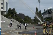[경남도민뉴스=최미정 기자] 김해시도시개발공사 진영스포츠센터는 다가오는 2026년 전국(어울림)생활체육대축전의 성공적인 개최를 대비하여 지난 7일 진영공공체육시설 일원에서 진영119안전센터와 소방합동훈련을 실시했다. 이번 훈련은 체육행사 특성을 고려하여 화재 등 각종 재난 상황 발생 시 신속한 대응체계를 구축하고 유관기관 간 협력 대응능력을 강화하기 위해 마련됐다. 이날 훈련에는 스포츠센터 1층 남자탈의실에 화재가 발생했다고 가정해 센터 자위소방대의 상황 전파 및 화재 초기 진압과 진영119안전센터의 화재진압과 인명구조 및 응급처치 등을 전개했다. 특히 체육행사 관련 시설임을 감안해 맞춤형 대피 유도훈련과 더불어 화재초기 확산을 조기 진압하는 실전형 훈련으로 진행됐다. 센터 관계자는“다가오는 4월, 6월에 개최되는 2026년 전국(어울림)생활체육대축전에서 진영공공체육시설은 축구, 보디빌딩, 휠체어 럭비 경기장으로 지정됐다”며“많은 선수와 시민들이 방문할 것으로 예상되는 만큼 철저한 사전 점검과 훈련을 통해 안전사고 예방에 최선을 다하겠다”고 밝혔다. 진영스포츠센터는 향후에도 지속적인