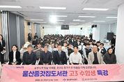 [경남도민뉴스=최재경 기자] 울산 중구에서 운영하는 울산종갓집도서관이 12월 17일 오전 10시 울산종갓집도서관 강의실에서 ‘고3 수험생 특강’을 진행했다. 이번 특강은 울산종갓집도서관과 함월고등학교가 지난 12월 12일 체결한 ‘청소년 독서문화 진흥을 위한 업무협약’의 일환으로 마련됐다. 이날 행사에는 김영길 중구청장과 김백수 함월고등학교 교장, 중구 도서관운영위원회 위원, 함월고등학교 3학년 학생 등 200여 명이 참석했다. 이번 특강에서는 『나는 대학 생활이 처음인데요』, 『한 권으로 끝내는 스피치』 등을 저술한 장한별 작가가 강사로 나서, 학생들을 따뜻하게 격려하고 대학 생활과 사회 생활에 도움이 되는 다양한 조언을 건넸다. 이어서 참석자들은 맞춤 색상(퍼스널컬러) 체험을 통해 자신의 피부 색깔과 분위기에 어울리는 색상을 파악하고 좋은 인상을 만드는 법 등을 알아봤다. 중구 관계자는 “이번 특강이 미래를 향해 새로운 걸음을 내딛는 학생들에게 도움이 되길 바란다”며 “앞으로도 청소년 독서 문화 확산을 위한 다양한 강좌를 지속적으로 운영하겠다”고 밝혔다.