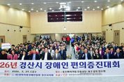 [경남도민뉴스=최민숙 기자] 사단법인 경상북도지체장애인협회 경산시지회는 27일 중소벤처기업진흥공단 대구경북연수원 대강당에서 조지연 국회의원, 장애인단체 관계자와 시민 등 200여 명이 참석한 가운데 ‘2026년 경산시 장애인 편의증진대회’를 개최했다. 이번 기념식은 장애인의 이동권과 접근권 보장 등 일상생활 전반에 있어 편의 증진 실천의 중요성을 알리고, 관련 유공자에 대한 표창 및 격려를 통해 지역사회의 관심과 참여를 유도하기 위해 마련됐다. 특히, 이날 행사에서는 식전 공연으로 여성 지체장애인으로 구성된 ‘사랑의 두드림 봉사단’의 신나는 공연과 장애인 유튜버 양성 프로젝트 꿈을 Green다 대상 수상작 ‘자연스러움’ 영상 감상 등 의미 있는 시간으로 채워져 시민들의 많은 관심을 이끌어 내었다. 경산시장 권한대행 이도형 부시장은 “편의 증진은 장애인과 노인 등 특정 계층을 위한 정책이 아니라 모든 시민의 삶의 질을 높이는 중요한 과제”라며, “앞으로도 차별 없는 환경 조성과 실질적인 편의 개선을 위해 정책적 지원을 강화해 나가겠다”고 밝혔다. 한편, ‘편의증진의 날’은 편의시설에 대한 국민의 인식