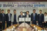 [경남도민뉴스=구인애 기자] 경상국립대학교와 경남대학교는 4월 24일 오전 10시 경남대학교 국제세미나실에서 국가균형성장과 동남권 지역 대학의 동반성장 촉진을 위한 업무협약을 체결했다. 이번 협약은 두 대학이 피지컬 인공지능(AI) 및 우주항공·방산을 포함한 동남권 전략산업 분야의 공동연구, 인력 양성, 산학연 협력 생태계 구축 등을 통해 지역혁신을 실현하는 것을 핵심 목적으로 하고 있다. 경남 지역을 대표하는 거점국립대와 사립대가 손을 맞잡음으로써, 개별 기관의 강점을 결합하고 인적·물적 인프라를 공유·활용하는 동반상승 효과가 기대된다. 특히, 경상국립대학교는 거점국립대학으로서 동남권 성장엔진과 연계하여 지역인재 양성을 위한 우주항공·방산 분야 브랜드 단과대학 설립과 AI 교육·연구 거점 허브화를 추진하고 있다. 경남대학교는 경남 최초 AI·SW융합 전문대학원 신설과 초거대 제조AI 글로벌 공동연구센터 운영을 통해 제조AI 및 피지컬AI 분야에 국내 최고 수준의 역량을 확대하고 있다. 양 대학은 협약서에서 ▲미래전략산업 및 지역혁신 대응을 위한 교육·인력양성·연구 협력 ▲제조 AI·