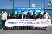 [경남도민뉴스=최현인 기자] 광주광역시체육회(회장 전갑수)는 호남권 중심 광역 오픈대회인 ‘2026 순천오픈 테니스대회’ 현장을 찾아 광주 연고 선수단과 관계자를 격려했다. 이번 대회는 전국 각지에서 약 260여 명의 동호인 및 선수들이 참가한 가운데 성황리에 진행되며, 남녀 단식과 동호인부 등 다양한 종목에서 열띤 경기가 펼쳐진다. 특히 호남권을 비롯한 10여 개 시·군에서 참가해 지역 간 스포츠 교류의 장으로서 의미를 더했다. 광주 대표로 참가하는 한국도로공사 테니스팀은 2019년에 창단과 함께 광주광역시와 연고 협약을 맺고 7년간 동행을 이어오고 있다. 김남훈 감독과 위휘원 선수 등 선수단 6명은 꾸준한 성과를 내며 한국 실업 테니스의 중심으로 자리잡고 있다. 이날 현장을 방문한 전갑수 광주광역시체육회장과 김광희 광주테니스협회장은 주요 경기장을 둘러보며 경기를 참관하고, 선수, 지도자들과 직접 소통하는 시간을 가졌다. 또한 대회 운영 관계자들의 노고를 격려하며 안전하고 공정한 경기 진행을 부탁했다. 전갑수 체육회장은 “광주를 대표하여 지역 연고의 가치를 지켜주는 한국도로공사 테니스 선수단이 지