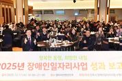 [경남도민뉴스=권중환 기자] 17일 MBC컨벤션에서 진주에서 1년간 장애인일자리사업에 참여한 참여자와 수행기관, 각 기관·단체장 200여 명이 모인 가운데 ‘2025년 장애인일자리사업 성과보고회’를 개최했다. 이번 성과보고회는 장애인일자리사업 수행기관 6곳에 민간위탁으로 추진한 2025년 장애인일자리사업 가운데 ‘복지 일자리’와 ‘발달장애인 요양보호사 보조사업’의 운영 성과를 종합적으로 점검하고, 현장의 다양한 의견을 수렴해 2026년도 장애인일자리사업의 내실 있는 추진 방안을 모색하고자 마련했다. 이날 보고회는 장애인일자리사업에 성실히 참여해 모범적인 근무를 보인 참여자 4명과 수행기관 배치기관 담당자 3명 등 총 7명에 대한 유공 표창을 수여하고, 1년간 수고한 참여자와 함께하는 만찬으로 이어지면서 소통과 화합의 장이 됐다. 김창연 진주시지체장애인협회장은 “이번 성과보고회가 참여자와 수행기관의 소통과 화합의 장이 돼 기쁘다”면서 “아울러 내년 장애인일자리사업에 대해 발전적인 방안을 마련하고 다양한 일자리를 발굴하는 뜻깊은 행사가 됐다”고 말했다. 조규일 진주시장은 “일자리가 최고의 복지라는 신념