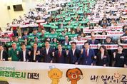 [경남도민뉴스=도문호 기자] 이장우 대전시장이 올해 네 번째 자치구 방문 행사로 30일 대덕구를 찾아 구민 500여 명과 소통의 시간을 가졌다. 대덕구 한남대 서의필홀에서 열린 이날 행사에서 이 시장은 주민 숙원사업 해결을 위한 아낌없는 지원과 대덕구 지역 핵심사업에 대한 차질 없는 이행을 약속했다. 최충규 청장이 건의한 ‘대덕 문화숲 놀이터 조성사업 지원’에 대해서 이 시장은 “폐관된 신탄진도서관을 리모델링하여 주민 누구나 이용할 수 있는 문화·여가 복합공간으로 재탄생시키는 구상은, 유휴 공공자산의 효율적 재생을 통해 재정을 절감하고 도시의 균형발전에 기여할 뿐만 아니라, 출산·양육 가정을 위한 육아지원과 정주여건 개선을 통해 육아친화도시로 도약할 수 있는 중요한 계기가 될 것으로 기대된다”라며 “시에서 특별조정교부금 10억 원을 지원하겠다”라고 강조했다. 또한, 비래동~와동~신탄진동을 연결하는 외곽도로 개설 적극 추진 요청에 대해서는 “비래~와동 구간은 혼잡도로, 와동~신탄진 구간은 광역도로로 구분하여 추진 중으로, 혼잡도로계획 반영 및 예타 결과에 따라 조속히 사업을 추진하겠다고 설명했으며, 대전육교 일