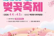 [경남도민뉴스=장광동 기자] 함양군은 ‘제24회 함양 백운산 벚꽃축제’가 오는 4월 4일부터 5일까지 이틀간 백전면 다목적광장 일원에서 개최된다고 밝혔다. 백전면 문화체육회(회장 황원하)가 주최·주관하는 이번 축제는 아름다운 50리 벚꽃길을 배경으로 각종 체험행사, 먹거리와 함께 벚꽃 전국트롯가요제 등 다양한 프로그램을 마련해 상춘객을 맞이할 예정이다. 백전면 50리 벚꽃길은 수동면에서 백전면으로 이어지는 구간으로, 30여 년 전 함양 출신의 고(故) 박병헌 재일거류민단장이 기증한 벚나무가 지금까지 보전 관리되어 함양군 봄 명소로 자리 잡고 있다. 축제 첫날인 4일에는 벚꽃축제 성공기원제를 시작으로 오전 11시 개막식과 축하공연, 주민자치프로그램 공연, 면민 노래자랑 등 각종 프로그램이 진행된다. 축제 둘째 날인 5일에는 마을 대항 민속놀이, 제3회 백운산 벚꽃 전국트롯가요제, 지역 가수 공연 등이 진행될 예정이며, 축제 기간 벚꽃길 야간조명 등 다양한 볼거리를 통해 방문객 체류 시간을 늘릴 계획이다. 특히, 올해로 3회째를 맞는 ‘함양 백운산 벚꽃 전국트롯가요제’가 축제 기간 개최되며