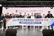 [경남도민뉴스=권중환 기자] 공공건축가 제도 시행과 함께 목조건축 대표도시로 주목받고 있는 진주시가 건축분야 최고 권위의 한국건축문화대상에서 ‘대통령상’이라는 또 하나의 금자탑을 쌓았다. 진주시는 5일 국토교통부가 주최⋅주관한 ‘2025 한국건축문화대상’ 건축문화진흥 부문에서 ‘대통령상’을 수상했다고 밝혔다. ‘한국건축문화대상’은 지난 1992년 제정돼 올해로 34회째를 맞는 대한민국 최고 권위의 건축분야 상으로 정평이 나있다. 이 상은 우수한 건축물을 발굴하고 건축의 공공가치를 일깨우기 위한 목적으로 제정돼 건축 관계자의 창작 의욕을 고취하고 건축문화 진흥을 도모하기 위해 해마다 시행되고 있다. 진주시가 수상한 ‘건축문화진흥 부문’은 건축 활동, 미디어, 출판 등 건축문화 진흥에 기여한 개인이나 단체에게 주어지는 상이다. 이번 수상은 진주시의 ‘사람 중심의 건축, 자연과 공존하는 도시’의 시책 방향성에 따라 지난 7년간 추진해온 공공건축가 제도와 목조건축 활성화 정책이 진주시의 건축문화 수준을 한 단계 더 끌어올린 점에서 높이 평가받은 것으로 분석된다. 진주시는 지난 20