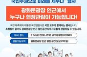 [경남도민뉴스=백형찬 기자] 국민 대축제와 대통령 국민임명식은 국민 모두가 함께하는 행사입니다. 초청장이 없어도 광화문광장 인근 열린공간에서 자유롭게 관람하실 수 있습니다. · 일시·장소: 8.15.(금) 20:00~21:30, 광화문광장 야외무대. · 관람가능구역: 광화문광장 인근 열린 공간(도보구역 등). ◆ 1인 미디어존 운영 국민적 관심 속에 치러지는 대축제 및 대통령 국민임명식의 원활한 취재 지원을 위해 1인 미디어존을 운영하니 많은 이용 바랍니다. · 미디어존 위치: 대한민국 역사박물관 옆.