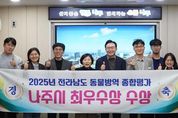 [경남도민뉴스=최인태 기자] 전라남도 나주시가 전국 최대 오리사육 지역이라는 높은 방역 부담 속에서도 전라남도가 실시한 ‘2025년도 동물방역위생 시책 추진종합평가’에서 최우수상을 받았다. 이는 촘촘한 현장점검과 농가 및 유관기관의 협력이 만들어낸 성과로 방역 선도도시로서의 위상을 다시 한번 입증했다. 28일 나주시에 따르면 전라남도 주관 ‘2025년도 동물방역위생 시책 추진종합평가’에서 최우수상을 받았으며 대상을 받았던 지난해에 이어 올해도 주요 가축전염병 발생 ‘0건’을 기록하며 안정적인 방역체계를 이어가고 있다. 이번 평가는 방역정책, 동물방역, 축산물위생, 방역대응 등 4개 분야를 종합 점검하는 방식으로 이뤄졌으며 조류인플루엔자(AI), 구제역(FMD), 럼피스킨병 등 재난형 가축전염병 대응 성과, 축산물 안전성 확보, 방역 실태 관리 등이 중점적으로 평가됐다. 특히 나주시는 국내 최대 규모의 오리 사육지로 관내 오리 농가는 117호, 사육 마릿수는 2187천수에 달해 방역 부담이 매우 큰 지역임에도 2023년 4월 이후 20개월 넘게 단 한 건의 가축전염병도 발생하지 않은 우수한 성적을 냈