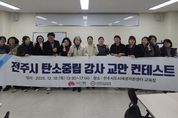 [경남도민뉴스=최인태 기자] 전주시는 18일 전주도시재생지원센터에서 탄소중립 시민교육의 내실화를 위해 활동 중인 시민강사들을 대상으로 ‘2026년 생애주기별 탄소중립 교육사업’에 활용할 신규 교안 개발을 위한 교안 콘테스트를 실시했다. 이번 콘테스트는 시가 내년 상반기까지 시민 10만 명을 대상으로 추진 중인 탄소중립 인식 전환 교육의 효과를 높이기 위해 마련된 것으로, 시민강사 30명이 참여한 가운데 진행됐다. 교안 콘테스트는 강사 4~6명으로 구성된 6개 조가 약 2개월간 준비한 교안을 발표하고, 2명의 평가위원이 내용을 심사하는 방식으로 진행됐다. 이날 발표를 통해 선정된 우수교안은 향후 교육현장에서 활용될 표준교안을 개발하는 데 기초자료로 활용될 예정이다. 시와 전주지속가능발전협의회는 이번 컨테스트를 계기로 2026년 신규교안을 개발에 속도를 내고, 내년 초 우수교안을 대상으로 표준교안 설명회도 열 계획이다. 진교훈 전주시 복지환경국장은 “이번 콘테스트가 시민강사들에게 더 나은 교안을 개발할 기회를 제공하고, 시민들에게는 더욱 질 높은 탄소중립 교육을 제공하는 계기가 되길 바란다