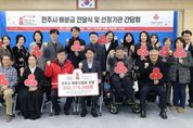 [경남도민뉴스=최인태 기자] 전북사회복지공동모금회가 2026년 전주지역 사회복지 발전을 위해 전주시에 8억 9000여 만 원의 대규모 배분금을 전달했다. 이에 따라 시는 전주지역 77개 복지기관과 203가구에 실질적인 도움을 줄 수 있게 됐다. 시와 전북사회복지공동모금회는 18일 시청 4층 회의실에서 우범기 전주시장과 한명규 회장, 이은영 사무처장, 77개 선정기관 관계자 등 30여 명이 참석한 가운데 ‘2026년 배분사업 선정기관 전달식 및 간담회’를 개최했다. 이날 전주시에 전달된 배분금은 총 8억 9271만 9000원으로, 전주지역 취약계층과 사회복지시설의 기능 보강 등 다양한 복지사업에 활용될 예정이다. 특히 내년도 배분금은 총 77개 기관에 8억 7241만 9000원이 지원되는 등 지원이 절실한 분야에 집중된 것이 특징이다. 구체적으로 △복권기금 아동청소년 야간보호사업 △사회복지시설 차량 및 사무용 PC 구입 △기획 프로그램 지원 등 광범위한 분야에 투입돼 복지기관의 서비스 품질 향상에 기여할 것으로 기대된다. 또한 시민이 가장 크게 체감할 수 있는 실질적인 나눔으