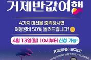 [경남도민뉴스=김부경 기자] 거제시는 관광객 유치 확대와 지역경제 활성화를 위해‘2026년 심쿵섬쿵 거제 반값여행’ 시범사업을 추진한다고 밝혔다. 이번 사업은 거제시 외에 거주하는 관광객 2~4인이 1팀을 구성하여 거제를 1박 이상 여행하는 경우를 대상으로 한다. 거제 여행 중 발생한 지원대상 소비금액을 여행 종료 후 7일 이내 증빙자료와 함께 신청하면 지역상품권으로 50%(최대 20만 원 이내)를 환급해 줌으로써 관광객의 체류시간을 늘리고 지역 내 소비를 유도하는 데 목적이 있다. 참여 희망자는 오는 4월 13일부터 5월 29일까지 거제 반값여행 홈페이지를 통해 온라인으로만 사전 신청할 수 있으며, 예산 소진 시 조기 마감된다. 실제 여행은 4월 15일부터 5월 31일까지 가능하며, 여행 종료 후 일정 요건을 충족하면 지원금을 지급받을 수 있다. 지원금을 받기 위해서는 ▲관내 숙박시설 1박 이상 이용 ▲유료 관광지 및 전통시장 각 1개소 이상 방문 ▲개인 SNS 홍보(팀 전원 사진 포함) ▲지원대상 소비금액이 10만 원 이상 등 4가지 지원요건(Mission)을 모두 충족해야 한다.