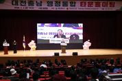 [경남도민뉴스=도문호 기자] 대전시는 6일 오전 10시 대전시청 3층 대강당에서 ‘대전․충남 행정통합 타운홀미팅’을 개최하고, 행정통합 특별법안을 둘러싼 주요 내용과 쟁점에 대해 시민들과 직접 소통하는 시간을 가졌다. 이번 행사는 최근 국회에 제출된 행정통합 특별법안에 대한 시민 이해를 높이고, 다양한 의견을 폭넓게 수렴하기 위해 마련됐다. 주민, 시의원, 민관협의체 위원, 전문가 등 약 500여 명이 참석했다. 행사는 지난해 국회에 발의된 특별법안과 최근 제출된 특별법안을 중심으로 주요 내용과 쟁점, 법안 간 차이점을 설명하는 것으로 시작됐다. 참석자들은 행정통합이 지역 행정체계와 주민 생활에 미칠 영향에 대해 설명을 듣고, 법안의 핵심 사항을 공유하는 시간을 가졌다. 이어진 질의응답 시간에는 이장우 대전시장과 대전․충남 행정통합 민관협의체 공동위원장이 함께 자리해 시민들의 질문에 답했다. 시민들은 재정 특례, 행정 권한, 지방의회 역할, 주민 참여 방식 등 다양한 분야에 대해 의견을 제시하며 활발한 논의를 이어갔다. 이장우 대전시장은 “행정통합은 단기적인 이해관계를 넘어 지역의 미래
