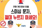 [경남도민뉴스=백형찬 기자] 쿠팡 개인정보 유출 스미싱 문자, 절대 누르지 마세요! ■ 스미싱 의심 문자 유형 쿠팡 피해보상 신청하세요! 쿠팡 정보유출로 신용카드 재발급 되었습니다. 이 번호로 전화 주세요. 쿠팡 개인정보 유출되어 비밀번호 변경이 필요합니다. : 링크 바로가기 쿠팡 개인정보 유출로 주문하신 물건 배송이 지연됩니다. 배송지연 확인하기 최근 쿠팡 사태를 악용한 스미싱 범죄가 증가하고 있습니다! 쿠팡 피해 관련 문자 수신 시 반드시 의심해야 합니다! ■ 스미싱 문자, 이렇게 예방하세요! - 문자 속 인터넷 주소는 절대 누르지 마세요! - 공식 고객센터에서 사실여부 확인하세요! - 의심 문자는 바로 삭제하세요! ■ 스미싱 문자, 이렇게 신고하세요! - 경찰청 ☎112 피싱사기 피해신고 - 금융감독원 ☎1332 피싱사기 관련 문의 상담 - 한국인터넷진흥원 ☎118 스팸 메시지 신고 문자로 돈·정보 요구= 100% 사기 출처가 불분명한 인터넷 주소는 절대 누르지 마세요!