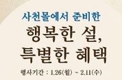 [경남도민뉴스=변정형 기자] 사천시가 2026년 설을 맞이해 1월 26일부터 2월 11일까지 사천시 특산물 온라인 쇼핑몰인 '사천몰'에서 전품목 30%할인 행사를 실시한다. 사천몰은 사천시에서 운영하는 공식 온라인 쇼핑몰로, 사천시에서 인증한 우수한 농·수산물과 지역 특산품이 입점해 있다. 대표 품목으로는 멸치, 단감, 토마토, 키위, 곡류, 버섯 등 농‧축‧수산‧임산물 및 와인, 젤리 선물세트 등 지역 특산 가공품이 있다. 박동식 시장은 “설을 맞아 가족과 지인들에게 사천의 품질 좋은 특산물을 합리적인 가격에 선물 할 수 있는 좋은 기회이다”며, “사천시 농가와 소비자 모두에게 도움이 될 것으로 기대한다”고 말했다.