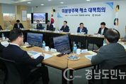 회의에는 김경수 경남도지사를 비롯해 한국토지주택공사(LH), 주택산업연구원, 대한주택건설협회, 경남건축사회, 지역대학의 도시공학, 건축학, 부동산금융학 전공 교수, 공인중개사, 경남도의회, 경남연구원 등 관련 전문가 16인이 참여했다. 이날 자리는 도내 주택 가격 하락과 거래량 감소, 미분양주택 증가 등 주택시장 침체가 장기화됨에 따라 지난달 30일 김 지사가 전문가 회의를 준비해달라는 지시에 의해 마련됐다. 경남도내 미분양주택은 지난 9월말 기준 총 13,903호로 전국 60,062호의 약 23.1%를 차지하고 있다. 공동주택 사업 승인 후 분양 시점부터 계약되지 않은 호는 미분양주택으로 집계된다. 김 지사는 모두발언에서 “경남이 전국 미분양 주택의 약 4분의 1을 차지하고 있는 가운데, 도 차원의 대책과 국토부 건의를 통해 조금씩 줄고는 있지만 여전히 어려운 상황”이라고 진단했다. 또한 “사업 승인이나 분양 승인을 막는 방식으로 미분양주택 문제가 해소되는 것인지 종합적으로 접근하지 않으면 다른 부작용을 낳을 수도 있다”면서 “미분양주택뿐 아니라 주거 환경과 주거 복지까지 포함해서 전반적인