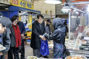 [경남도민뉴스=김동규 기자] 하은호 군포시장은 설 명절을 앞둔 지난 5일 관내 전통시장을 찾아 장보기 행사를 진행하며 시장 상인들을 격려했다. 하 시장은 군포역전시장, 산본시장을 차례로 찾아 온누리상품권으로 떡, 과일, 전 등 먹거리 물품을 직접 구입했다. 전통시장을 돌며 시장 상인들과 새해 인사를 나누고 물가 상승 등으로 어려움을 겪고 있는 현장의 목소리를 경청하는 시간도 가졌다. 이날 구입한 물품은 관내 아동 및 청소년복지시설 5곳에 전달됐다. 하은호 시장은 “설 명절을 앞두고 장보기를 위해 많은 시민들이 전통시장을 찾아주시길 바란다”며 “시장에 활기를 불어넣고 지역경제가 되살아날 수 있도록 시에서도 다양한 지원과 노력을 아끼지 않겠다”고 밝혔다.