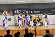 [경남도민뉴스=백형찬 기자] 거창군은 지난 1일 거창군종합사회복지센터 대회의실에서 거창풍물놀이패의 제24회 정기공연 ‘북돋음, 신명으로 치닫다!’가 구인모 거창군수, 군의원 등 100여 명이 참석한 가운데 성황리에 열렸다고 밝혔다. 이번 정기공연은 거창풍물놀이패와 함께해 온 단원들이 한 해 동안 갈고닦은 기량을 선보이는 자리로, 관객과 출연자가 함께 어우러져 하나 되는 문화소통의 장으로 마련됐다. 공연은 열림굿 창작타악을 시작으로 풍물장단과 소리굿 ‘비나리’, 이매방류 승무와 소고춤, 영남사물, 삼도설장고, 삼도사물 등 전통예술 무대로 꾸며졌으며, 이어 현대적 감각을 더한 타악 퍼포먼스와 무대와 객석이 함께 어우러지는 대동난장이 펼쳐져 관객들의 큰 호응을 얻었다. 이날은 거창풍물놀이패를 비롯해 △너나들이풍물패 △타악그룹 나래울 △전통예술공연단 타혼 △오름무용단 △대파람풍물패(거창대성고 졸업생)가 함께 참여했으며, 전통문화에 익숙하지 않은 군민들도 쉽게 즐길 수 있는 다채로운 볼거리로 가을밤의 흥과 멋이 살아난 신명나는 무대를 선보였다. 하용현 거창풍물놀이패 대표는 “너나없이 어우러지는 푸진 판, 지역에서 활동하는 예술인들과 단원들이 함께 엮어내는 난장무리들의