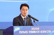 [경남도민뉴스=최인태 기자] 전라남도의회 김태균 의장은 11월 26일 순천에서 열린 2025년 전라남도 민원메신저 성과보고회에 참석했다. 이날 성과보고회는 김영록 도지사를 비롯해 전남 22개 시군에서 활동하는 민원메신저 등 200여 명이 참석했으며 2025년 성과보고와 우수메신저 표창 수여, 결의문 낭독과 기념 촬영 순으로 진행됐다. 김태균 의장은 “299명에 달하는 전라남도 민원메신저 여러분은 도민과 행정 사이 소통의 연결고리가 되어 행정이 미처 살피지 못한 일상 속 불편과 위험에 신속하게 대응할 수 있도록 돕고 있다.”며 “여러분이 전달한 민원은 정책의 변화와 혁신을 이끄는 소중한 밑거름이 되고 있다.”고 말했다. 이어, “이번 성과보고대회에서 공유되는 우수사례와 경험들이 전남 전체로 널리 퍼져나가길 바란다.”며 “민생 현장의 크고 작은 목소리를 담은 제도가 더욱 활성화되고 전남도와 도민 간 신뢰와 협력 또한 더 단단히 뿌리내리길 기대한다”고 밝혔다. 한편, 제13기 전라남도 민원 메신저는 올 한 해 동안(2025. 10. 31. 기준) 6,224건의 일상생활 속 고충과 불편 사항을 제보하는 등
